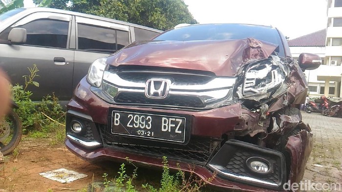 Setelah mengetahui menabrak Muhamad Fitrawansyah (7), dan Muhamad Ilham (3), Rohmad menabrak tembok yang ada di depannya. Bagian depan sebelak kiri mobil pun ringsek.