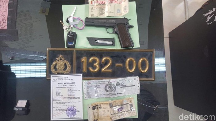 "Yang tampak sebagai senjata api setelah ditelusuri ternyata adalah senjata jenis airsoft gun. Pelat nomor dibuat di pinggir jalan di daerah Pamulang," ungkap Alexander.