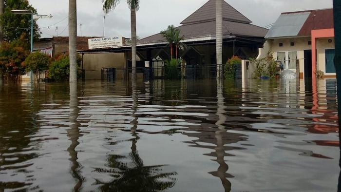Banjir ini terjadi di perumahan warga Jl Cipta Karya dan Datuk Tunggal di Tampan. Banjir di kawasan ini merupakan limpahan air dari sejumlah kawasan lain.