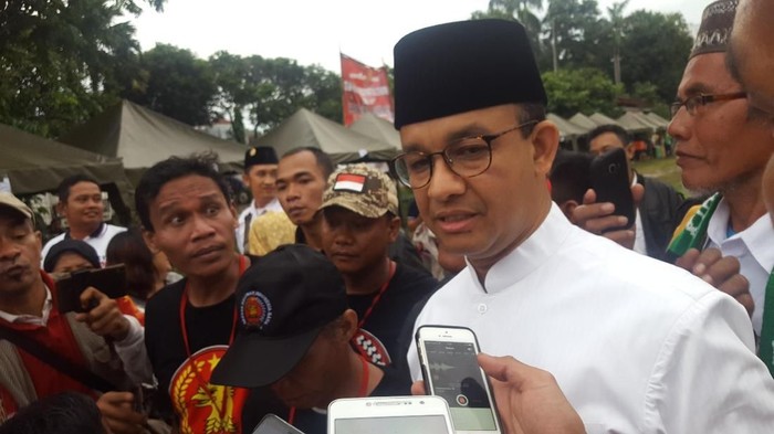Dari pantauan, Anies tiba pukul 17.30 WIB menggunakan kemeja berwarna putih lengkap dengan peci berwarna hitam. Anies telat datang karena ia sebelumnya menghadiri acara peringatan nyepi umat Hindu Jakarta.