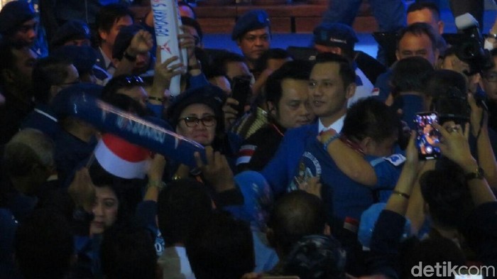AHY kemudian turun dari atas panggung. Ia segera menghampiri sang Ayah, Ketum PD Susilo Bambang Yudhoyono (SBY) dan sang Ibu, Ani Bambang Yudhoyono.