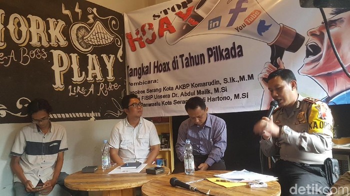 "Momentumnya (hoax) dicari, saat daerah melaksanakan pesta demokrasi mempersiapkan kepala daerah, (situasi) ini yang dimanfaatkan. Dibuat keresahan agar terkesan bahwa kota kita sedang dalam kondisi tidak stabil," kata Komarudin dalam diskusi bertema 'Tangkal Hoax di Tahun Pilkada di Kota Serang', Senin (12/3/2018).