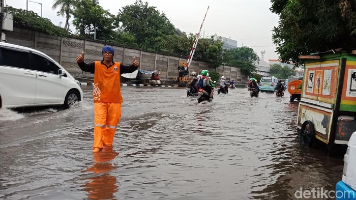 Salah satu petugas, Darman (27), menduga air yang menggenang akibat saluran mampat. Ditambah volume air tinggi akibat hujan lebat.