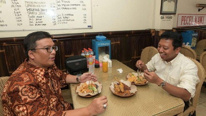 Tentunya tarif yang diminta Rommy kepada lelaki penjual pecel tersebut hanya sekadar candaan. Momen lucu itu juga mengundang senyuman dari para pramusaji yang menyaksikannya.