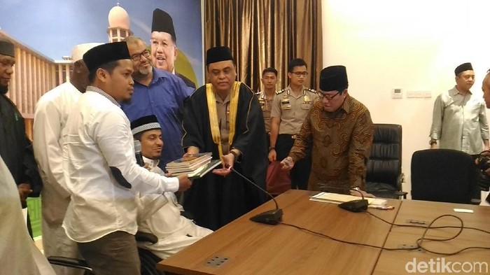 "Sebelum kita tutup pertemuan ini insyaallah kita akan berikan berita gembira untuk memberikan hajinya kepada Bapak Jenderal Syafruddin dan istrinya untuk menjadi tamu kita untuk menunaikan haji," kata Syekh Kahlid di Kantor Dewan Masjid Indonesia (DMI), Jl. Jenggala I No 3, Kebayoran Baru, Jakarta Selatan, Senin (2/4/2018).