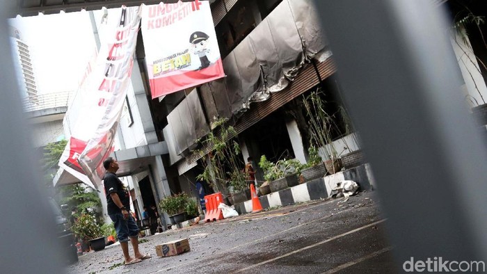 Kebakaran di Gedung SDM Polda Metro Jaya terjadi pada Sabtu sekitar pukul 15.15 WIB. Saat api muncul, polisi yang berada di dekat lokasi langsung mengambil mobil water canon untuk memadamkan api.
