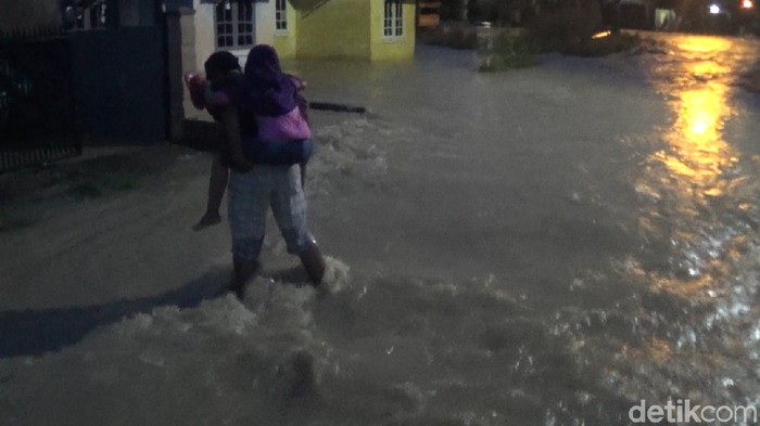 "Airnya masuk ke dalam rumah, barang-barang perabotan rumah tangga sementara kami pindahkan ke tempat yang lebih tinggi, takut nanti pada basah. Mana arus airnya deras lagi," kata Marlinda, warga komplek perumahan Kotabaru Indah, Minggu malam (8/4/2018).