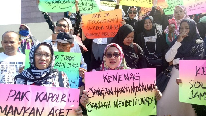 "Solusi dari pemerintah untuk calon jemaah yang gagal setelah pencabutan izin Abu Tours oleh pihak Kementerian Agama," kata koordinator aksi, Lusjhamariah, di Kantor DPRD Sulsel, Jalan Urip Sumoharjo, Selasa (10/4/2018).
