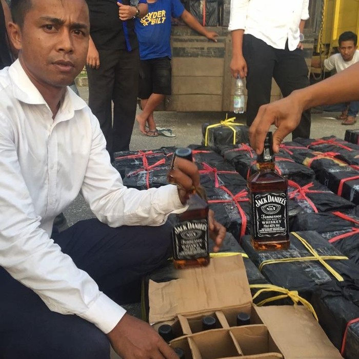 Adapun tiga tru berisikan rokok merek Red Black sebanyak 2.150 slop. Miras ada 7.884 botol dengan berbagai merek yakni, Chivas, Jack Daniel, Jose Cuervo. Ada lagi oli merek Suniso sebanyak 533 jeriken. Termasuk juga paku dan besi. Tiga orang sopir truk, dilakukan pemeriksaan.