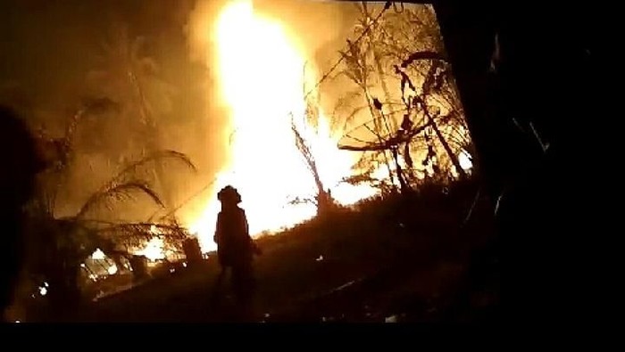 Hingga pukul 11.25 WIB, api belum bisa dipadamkan. Semburan api setinggi 100 meter masih terlihat. Di sekitar lokasi sudah dipasangi garis polisi agar warga tidak mendekat. Petugas gabungan masih bersiaga di lokasi.