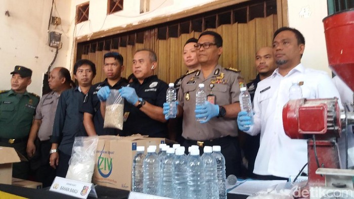 Direktorat Kriminal Khusus Polda Metro Jaya mengamankan 5 ton ciu, 2 ton siap edar, dan 3 ton setengah jadi. Ciu berwarna bening itu disamarkan dengan botol dan dus air mineral.