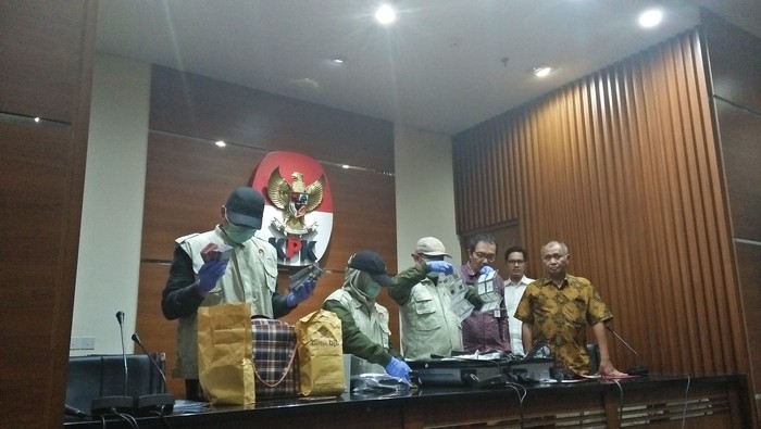 "Dalam kegiatan ini KPK total mengamankan sejumlah aset yang diduga terkait tindak pidana, yaitu logam mulia atau emas 1,9 kg, uang senilai Rp 1.844.500.000 yang di dalamnya termasuk Rp 400 juta yang diamankan saat OTT," kata Wakil Ketua KPK Saut Situmorang di Gedung KPK, Jalan Kuningan Persada, Jakarta Selatan, Sabtu (5/5/2018).
