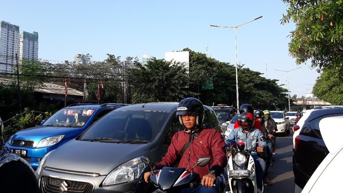 Pantauan detikcom di lokasi, Minggu (6/5/2018) pukul 16.05 WIB, situasi lalu lintas di depan TPU Karet Bivak tampak padat. Hal ini lantaran, satu jalur paling kiri di jalan depan TPU digunakan untuk parkir mobil. Kendaraan hanya bisa memakai dua jalur.