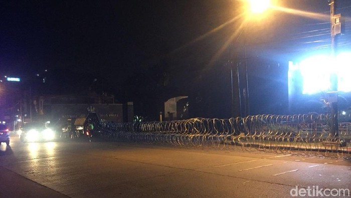 Pantauan detikcom, polisi mengeluarkan kawat berduri dari mobil security barrier pada pukul 00.12 WIB, Rabu (9/5/2018). Penjagaan di sekitar Mako Brimob diperketat.