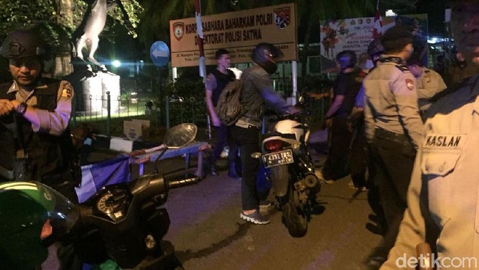 Polisi merazia pengendara motor di depan Mako Brimob. (Yayas/Detikcom)