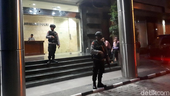 Pantauan detikcom, Senin (14/5/2018) pukul 18.01 WIB, enam anggota Brimob tiba di kantor Bareskrim Polri, Gedung KKP, Jalan Merdeka Timur, Jakarta Pusat. Mereka membawa sejumlah tas ransel dan peralatan lain yang dikemas dalam lebih dari empat tas selampang panjang.