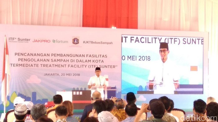"Akan menciptakan suatu efisiensi bahwa 2.200 ton sampah 25% persen sampah di Jakarta akan dikonfersi menjadi 35 megawatt," kata Sandi.