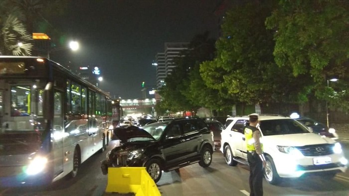 "Iya betul, menabrak separator busway di Thamrin mengarah Bundaran HI," ujar petugas call center NTMC, Yudi, ketika dimintai konfirmasi, Kamis (24/5/2018).