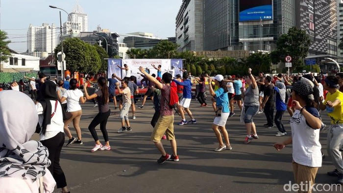 Sementara itu kegiatan senam diadakan oleh sebuah yayasan. Panitia acara mempersilakan siapa saja yang melintas untuk bergabung.