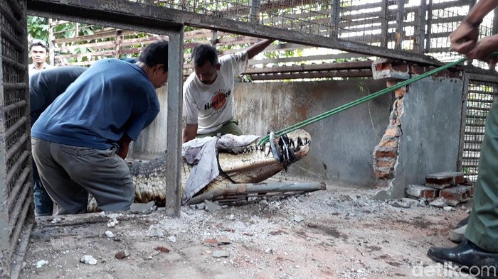 Buaya tersebut bahkan sempat membuat pintu pagar kecil yang jadi pembatas antara kolam buatan dan daratan jebol. Buaya 800 kg itu sudah dipelihara selama 20 tahun. Sedangkan 2 buaya lain sudah dipelihara selama 8 tahun.