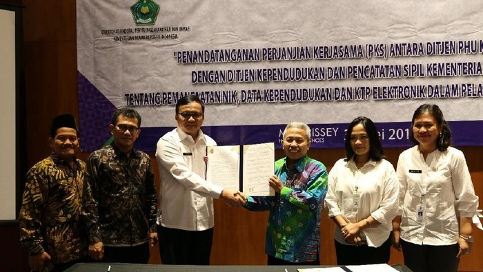 Sinergi ini ditandai dengan Penandatanganan Perjanjian Kerjasama (PKS) antara Dirjen Penyelenggaraan Haji dan Umrah (PHU), Nizar Ali, dengan Dirjen Kependudukan dan Pencatatan Sipil Kemendagri yang diwakili oleh Direktur Fasilitasi dan Pemanfaatan Data dan Dokumen Kependudukan David Yama di Jakarta.