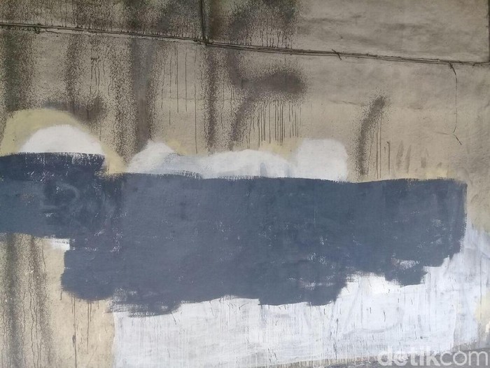Ada empat personel Petugas Penanganan Prasarana dan Sarana Umum (PPSU) yang mengecat coret-coretan di gedung yang tidak terpakai tersebut. Coretan tersebar mulai dari dinding dan tiang penyangga bangunan.