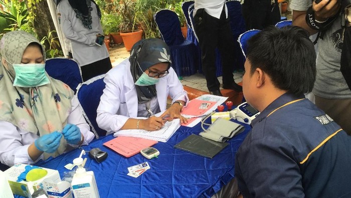 Pantauan detikcom di lokasi, para sopir antre dan memeriksakan kesehatan di posko kesehatan. Mereka mengecek tekanan darah, kadar gula dalam darah, dan urine.