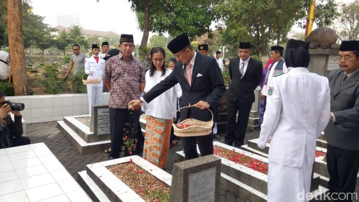 Sandiaga berziarah ke makam kedua tokoh nasional itu di TPU Karet Bivak, Karet Tengsin, Jakarta Pusat, Jumat (8/6/2018). Dia berziarah didampingi oleh Wali Kota Jakarta Pusat Mangara Pardede.