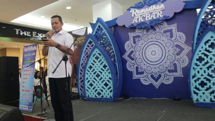 "Dalam senyap bening sujud ini, dengan segenap kerendahan hati, perkenankan kami melafazkan namaMu, mendekapnya dalam jiwa," begitu sepenggal puisi yang dibacakannya.