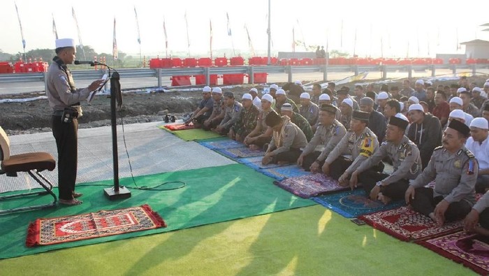 "Selain petugas di posko mudik, salat id juga diikuti para pemudik yang masih di berada di Kabupaten Tegal," ujar Kapolres Tegal, AKBP Dwi Agus Prianto, kepada detikcom.