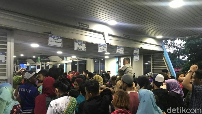 Pantauan detikcom, pengunjung kebun binatang Ragunan mulai memadati halte TransJakarta Ragunan yang berada di Jalan Saco, Pasar Minggu, Jakarta Selatan, Minggu (17/6/2018) sekitar pukul 17.30 WIB.