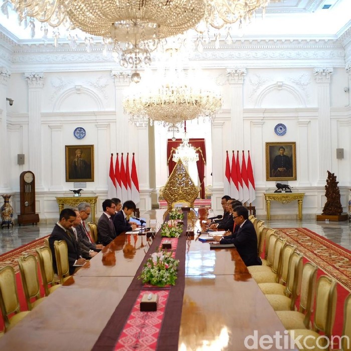 Jokowi turut didampingi Mensesneg Pratikno, Menlu Retno Marsudi, dan utusan presiden untuk Jepang Rachmat Gobel. Pertemuan saat ini berlangsung tertutup. (dkp/dhn)