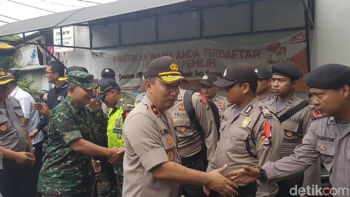 Selain Kapolda Banten, hadir dalam pengecekan persiapan TPS 10 di Kota Serang adalah Danrem 064/Maulana Yusuf Kolonel Czi Budi Hariswanto, Wakil Wali Kota Serang Sulhi, dan Ketua KPU Serang Heri Wahidin. (bri/fdn)