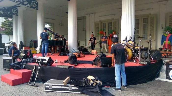 Pantauan detikcom di Balai Kota, Jalan Medan Merdeka Selatan, Sabtu (30/6/2018) pukul 07.45 WIB, berbagai alat musik sedang dipersiapkan di pelataran pendopo Balai Kota. Ada gamelan, piano, drum, saron dan angklung.