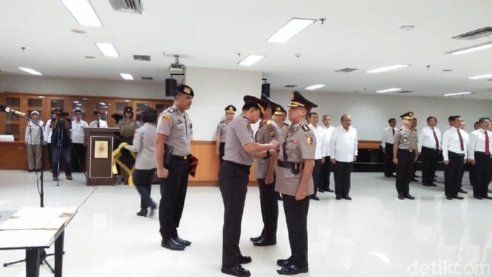Foto: Kabareskrim Komjen Ari Dono Sukmanto melantik Kombes Erwanto Kurniadi menjadi Dirtipikor. (Azizah-detikcom) |