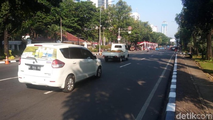 Pantauan di lokasi, Minggu (8/7/2018) pukul 08.10 WIB, tampak masih ada kendaraan yang melintas di Jl Medan Merdeka Selatan menuju Gambir, begitu juga sebaliknya. Tidak ada kepadatan lalu lintas saat ini.