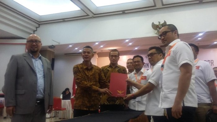 Pantauan detikcom, di kantor KPU, Jl Imam Bonjol, Jakarta Pusat, Selasa (17/7/2018), Ridha mendaftarkan calonnya sekitar pukul 17.55 WIB. Ridha datang dengan ditemani Sekjen Garuda Abdullah Mansyuri dan beberapa kader Partai Garuda.