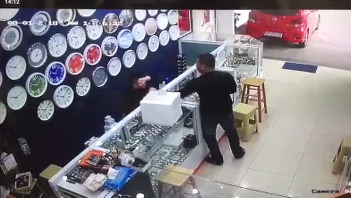 Viral pemukulan di toko arloji Pontianak (Foto: screenshot video) |