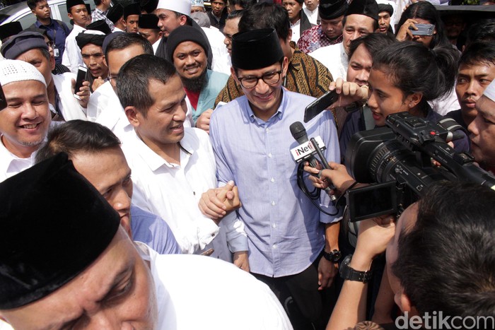 Tepuk tangan meriah menyambut pernyataan Sandi. Pria berkacamata itu merespons balik dengan senyum. Dia memang terlihat lebih santai.