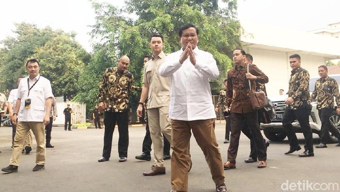 Pantauan di lokasi, Jakarta Pusat, Senin (13/8/2018), Prabowo tiba sekitar pukul 06.40 WIB. Prabowo tiba terlebih dulu dari pendampingnya, Sandiaga Uno.