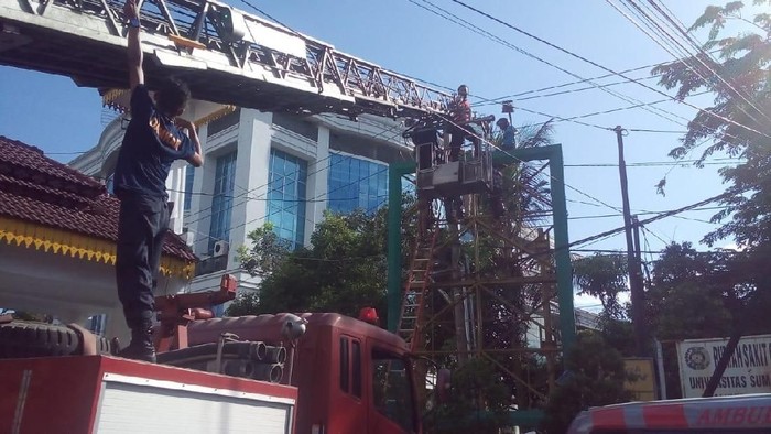 "Dia mau masang baliho HUT Kemerdekaan RI di papan reklame itu," kata seorang warga, Hutabarat, kepada wartawan, di lokasi kejadian, Jalan Dr Mansur Medan, Selasa (14/8/2018).