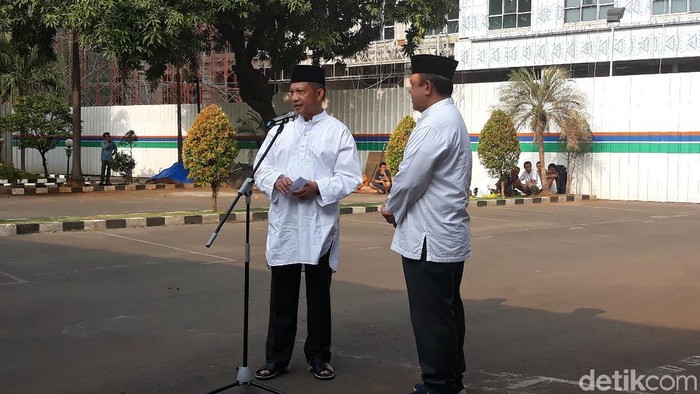"Bismillahirrahmanirrahim, dengan ini di tanggal 10 Dzulhijah 1439 Hijriah atau 22 Agustus 2018, saya atas nama pribadi dan keluarga menyerahkan hewan kurban satu ekor sapi," ujar Ari Dono.