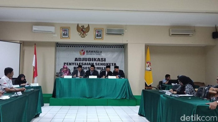 Sidang dilaksanakan di ruang aula Bawaslu DKI, Jalan Danau Agung 3, Sunter, Jakarta Utara, pukul 10.30 WIB. Hadir juga pihak pemohon, M. Taufik, yang diwakili dari Sekretariat Lembaga Advokasi Gerindra Mohamad Taufiqurrahman. Sedangkan dari pihak termohon, hadir Komisioner KPU DKI Nurdin.