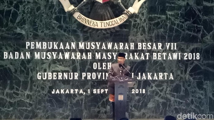 "Betawi pusatnya demokrasi, bahwa di tempat ini Betawi jadi tuan rumah yang yang baik saat kemerdekaan," kata Anies membuka Musyawarah Besar Bamus Betawi di Balai Kota, Jalan Medan Merdeka Selatan, Jakarta Pusat, Sabtu (1/9/2018).