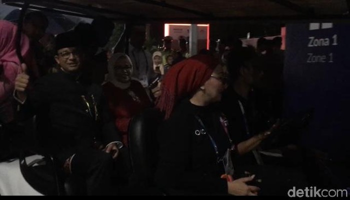 Anies bertolak dari Hotel Fairmont, Jl Asia Afrika, Senayan. Dia dan istrinya tiba di areal Stadion GBK menggunakan mobil golf pukul 17.57 WIB, Minggu (2/9/2018).