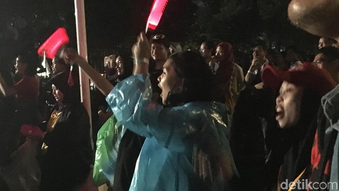 Selepas hujan reda, Minggu (2/9/2018), sekitar pukul 20.40 WIB, keseruan penonton makin meriah. Mereka masih menikmati tontonan yang disuguhkan.