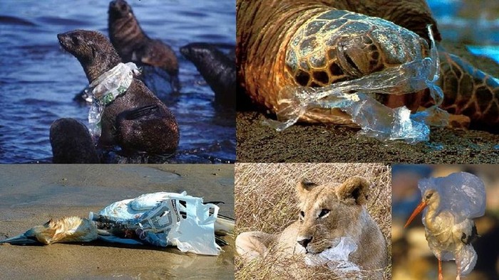 Sedihnya, hewan-hewan laut seperti lumba-lumba, penyu laut dan anjing laut menganggap plastik tersebut makanan dan akhirnya mati karena tidak dapat mencernanya. Dan ketika mereka mati, kantong plastik yang berada di dalam tubuhnya tidak dapat hancur dan akan meracuni hewan lain.