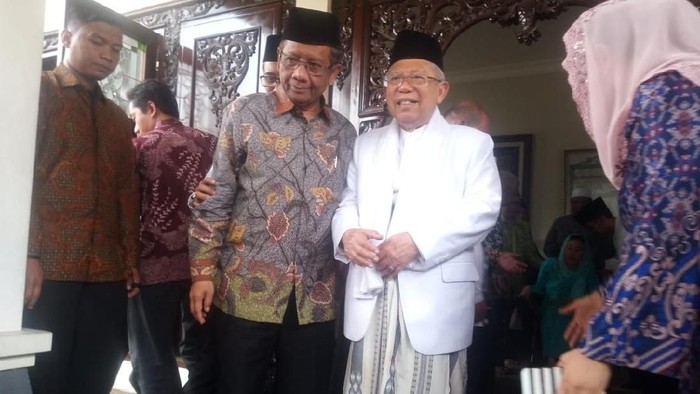 Jakarta - Mahfud Md ikut menyambut cawapres KH Ma'ruf Amin yang berkunjung ke keluarga Presiden RI ke-4 KH Abdurrahman Wahid (Gus Dur). Meski sempat terganjal isu cawapres Joko Widodo, keduanya tetap hangat satu sama lain.
