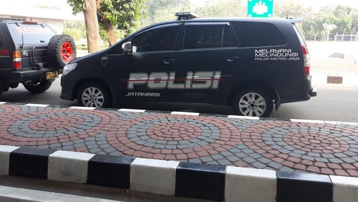 Pantauan detikcom di Gedung DPR, Senayan, Jakarta, Senin (15/10/2018), mobil polisi terparkir di halaman. Tampak ada mobil Resmob Ditreskrimum Polda Metro Jaya juga mobil Jatanras dan Inafis.