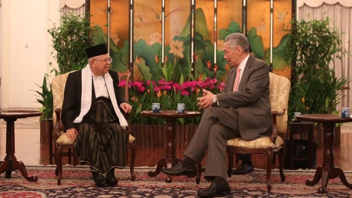 Ma'ruf Amin diterima PM Lee di Istana Singapura pada pukul 12.30 waktu setempat. Cawapres nomor urut 01 ini juga menyampaikan salam pasangannya, Joko Widodo, kepada PM Kee.
